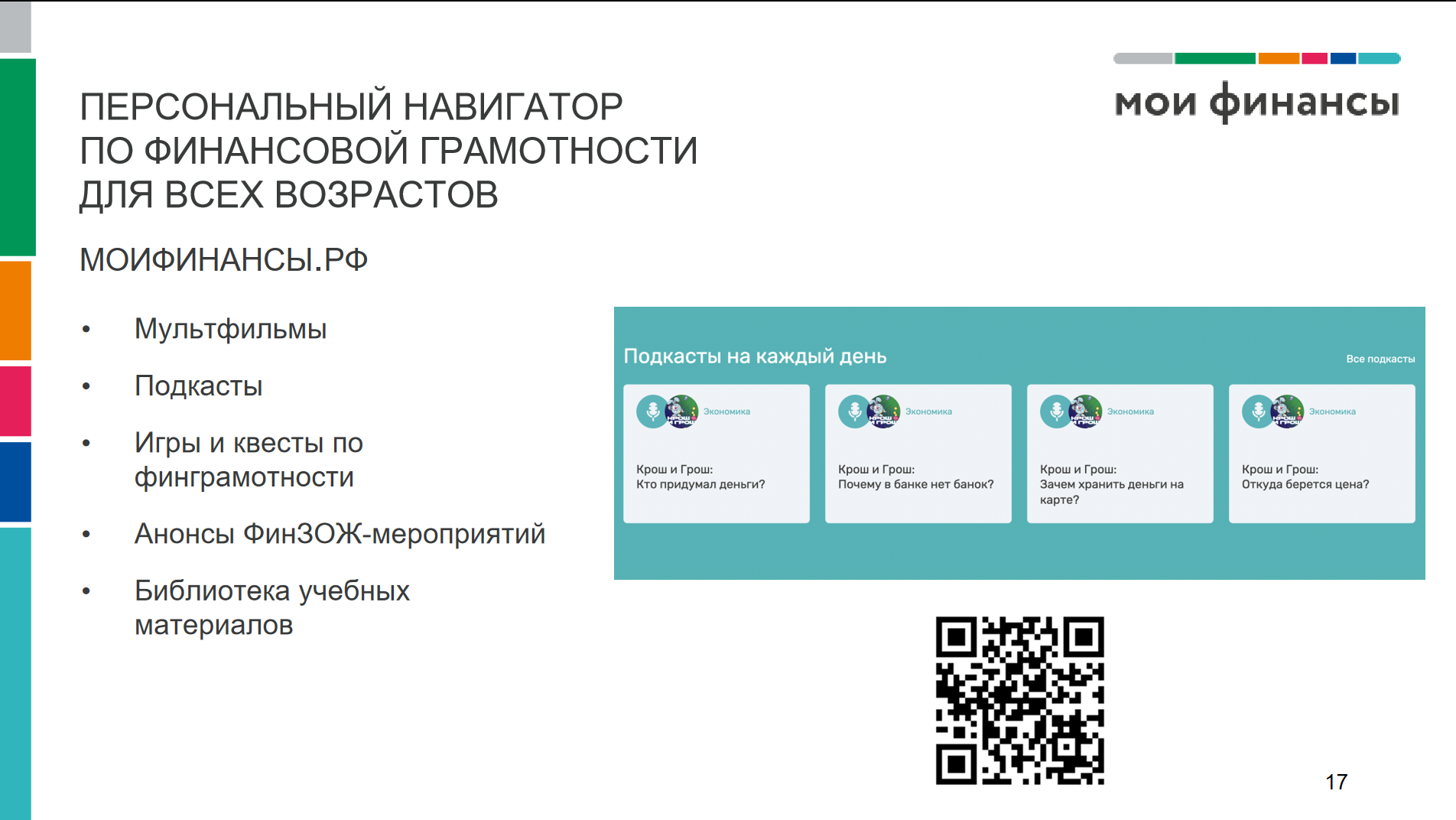 - Справочник организаций — база партнёров и организаций, занимающихся финансовым просвещением граждан.